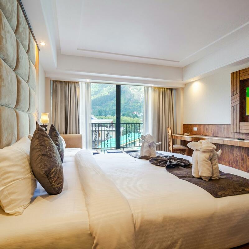Indulge in a spacious Deluxe Suite with a stunning view, modern amenities, and plush furnishings, perfectly suited for families or business travelers. Starting at $250 per night! Enjoy complimentary breakfast and high-speed Wi-Fi access during your stay! Check availability today! 1 King bed, suitable for 4 guests. Exclusive room features include a private balcony, and a complimentary mini-bar! Book now and experience comfort like never before! Perfect for both short stays and extended vacations! For those looking for a touch of elegance in their travels, our Deluxe Suite is the perfect choice! Now at a discounted rate of $200 on weekdays! Explore the city in style! Don't miss out on this special offer! Limited time only! Book your getaway today! - 5 Images - Room1.jpg, Room2.jpg, Room3.jpg, Room4.jpg, Room5.jpg! All subject to availability!